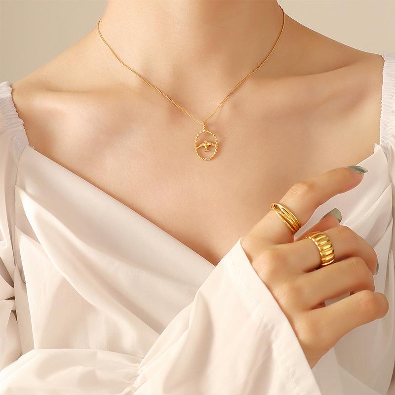 Винтажное ожерелье-цепочка на ключицу с вырезами: Японский и корейский стиль, не тускнеющая позолоченная титановая сталь