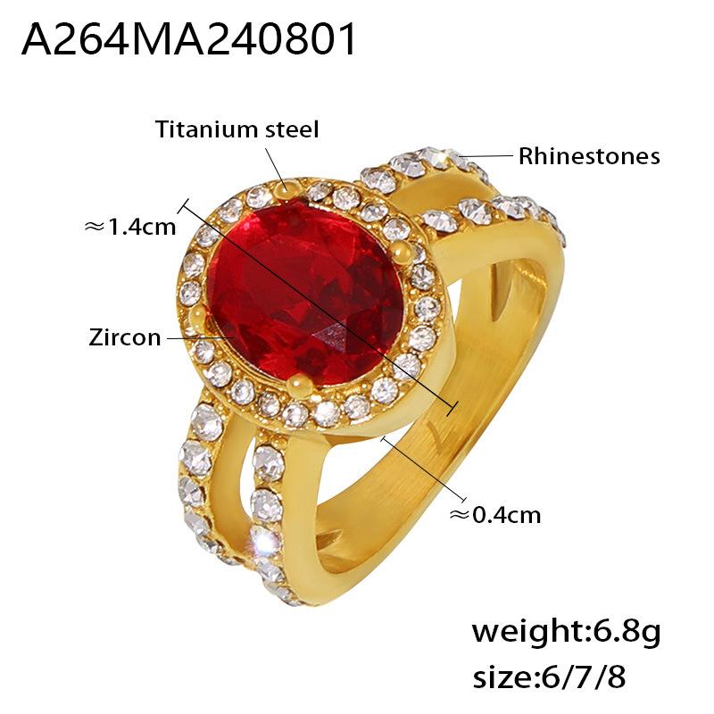 Винтажное роскошное овальное цирконовое бриллиантовое кольцо из 18-каратного золота с покрытием из титановой стали в стиле «темперамент» No. 8