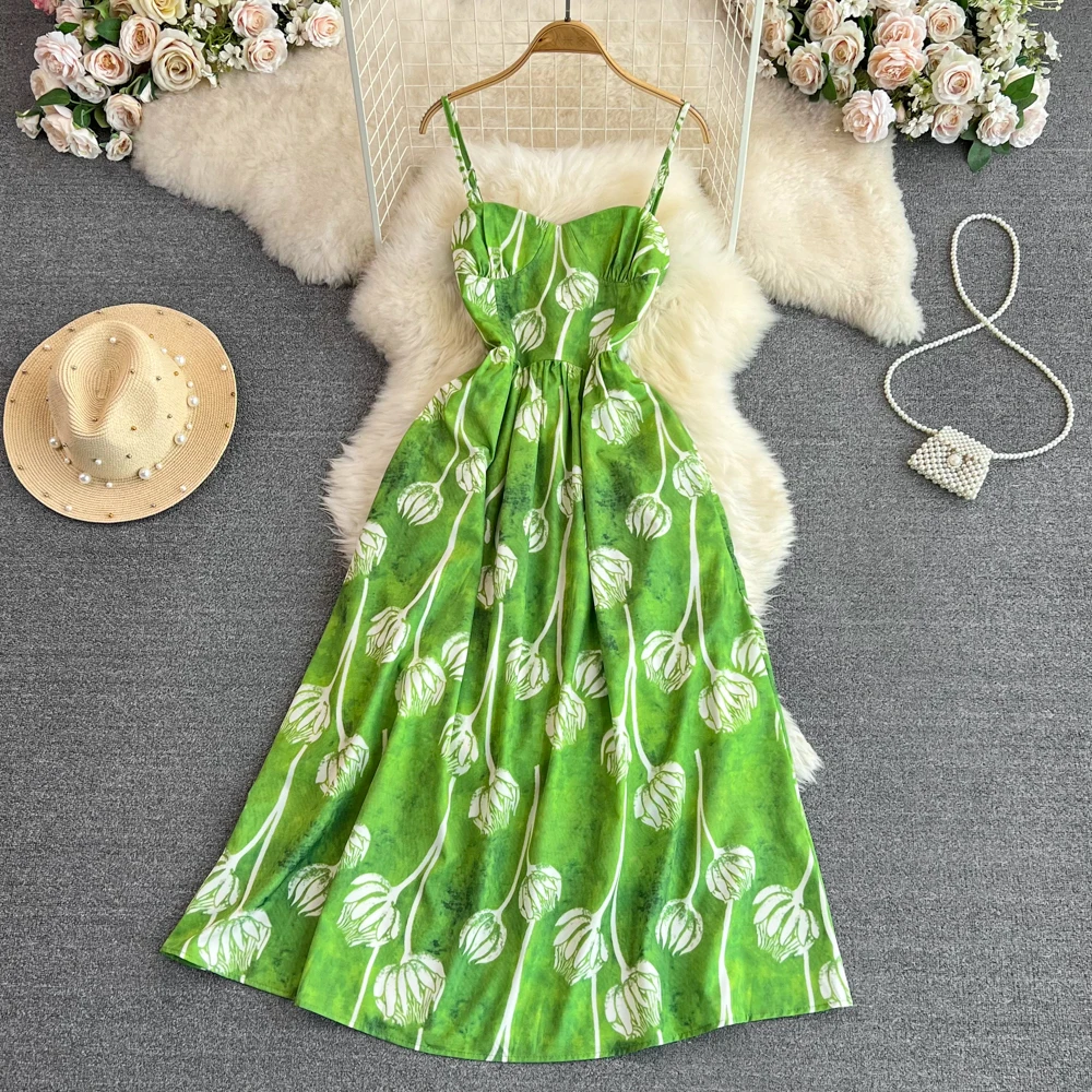 Винтажное сексуальное платье-комбинация с цветочным принтом, сказочное платье-трапеция, женское летнее шикарное пляжное платье с открытой ...