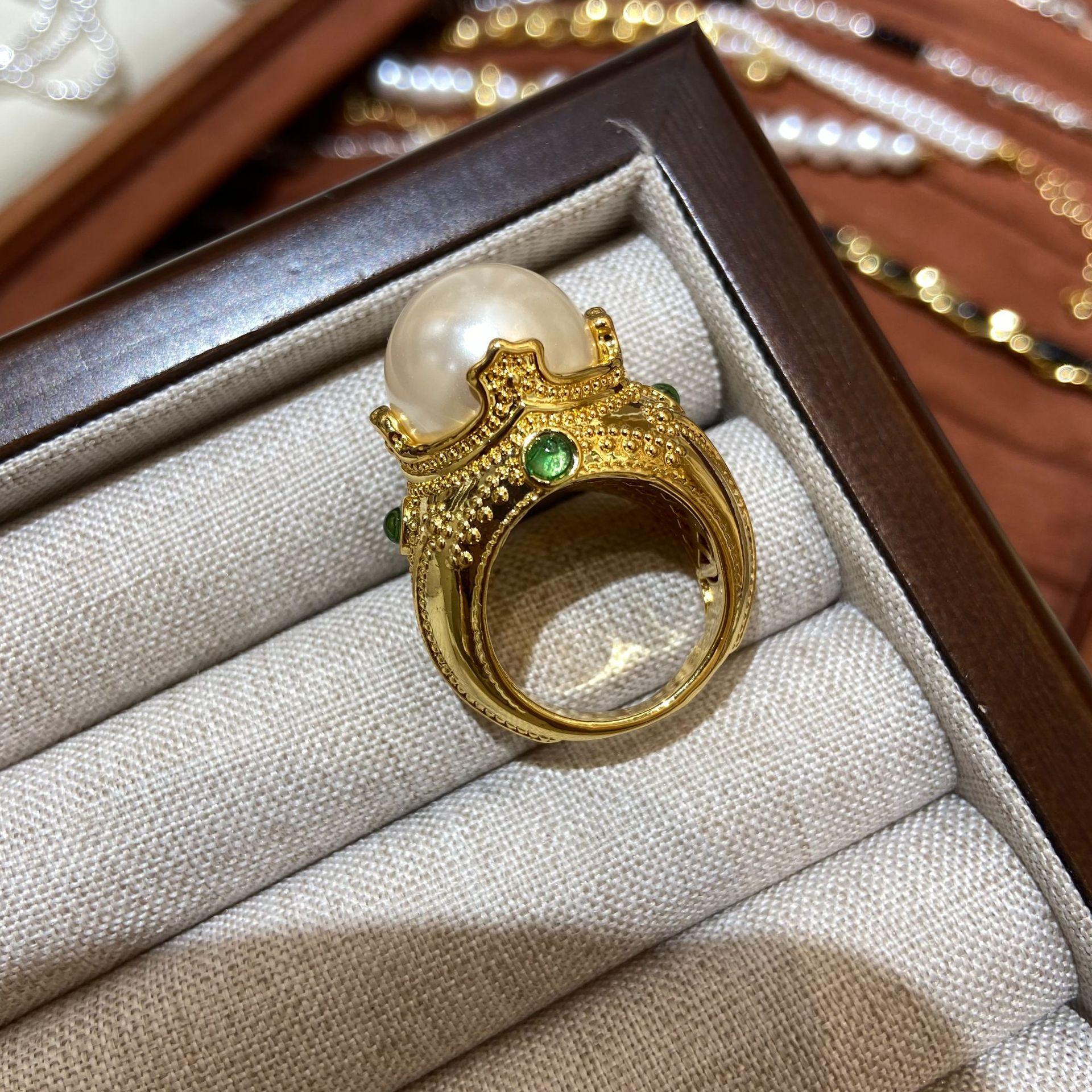 Винтажное трехмерное жемчужное роскошное кольцо, трехмерное высококачественное медное золотое кольцо с натуральными драгоценными камнями