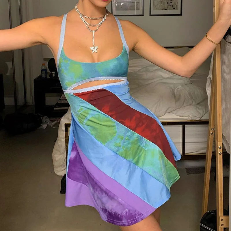 Винтажное шикарное сочетание цветов пикантное женское платье на бретельках Y2K мини-облегающее вечернее платье модное платье с запахом в по...
