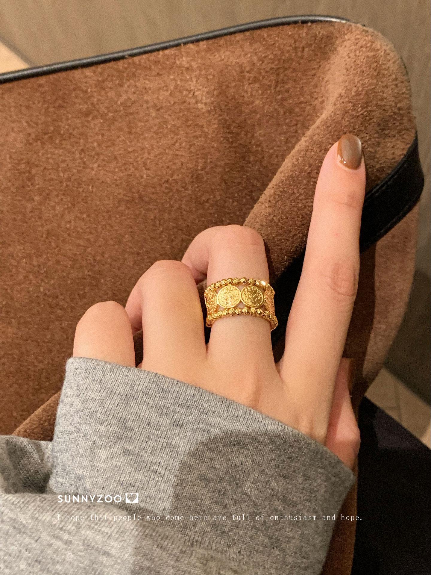 Винтажное шикарное широкое латунное кольцо Сан-Франциско, кольцо на указательный палец в стиле ретро с покрытием из белого золота