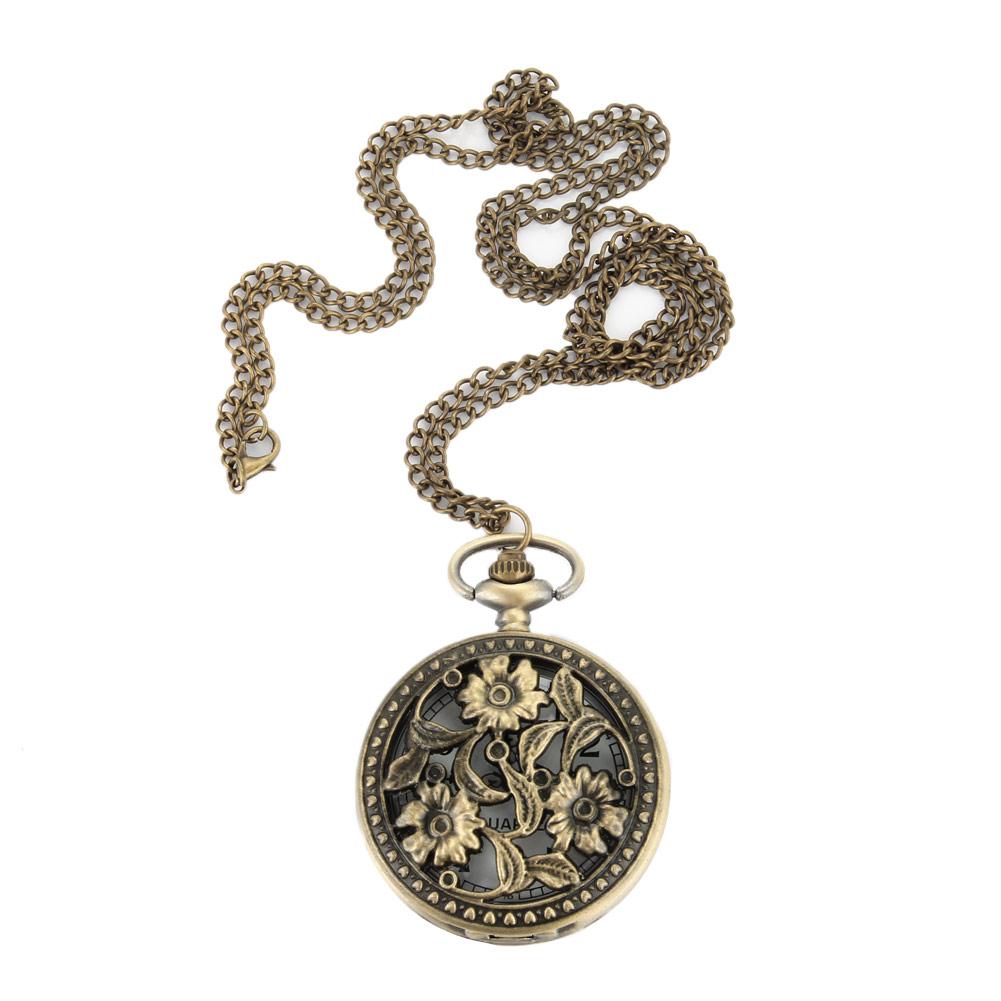 Винтажные Ретро Карманные Часы Цветочная Ажурная Крышка Кварцевые Карманные Часы Цепочка для Свитера Ожерелье Подвеска Часы Мужские Женские Подарок золотой