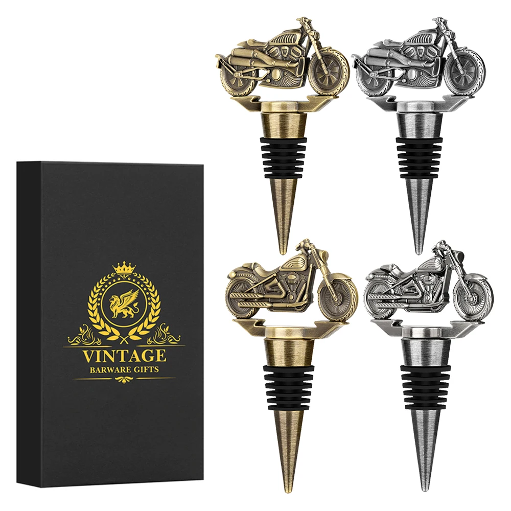 Винтажные бронзовые/серые, черные мотоциклетные декор, винные пробки, новый подарок для вина, барная посуда, инструмент, пробки для бутылок с черной подарочной коробкой