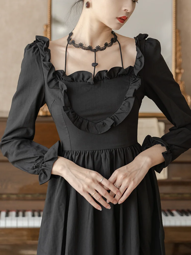 Винтажные вечерние платья-миди для женщин, черное французское элегантное платье, Осеннее милое платье лолиты, зимняя одежда в стиле ретро, ж...