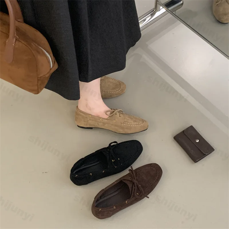 Винтажные женские лоферы, осень-зима 2023, модная удобная повседневная обувь с перекрестной завязкой, уличная нескользящая роскошная мягкая подошва на плоской подошве