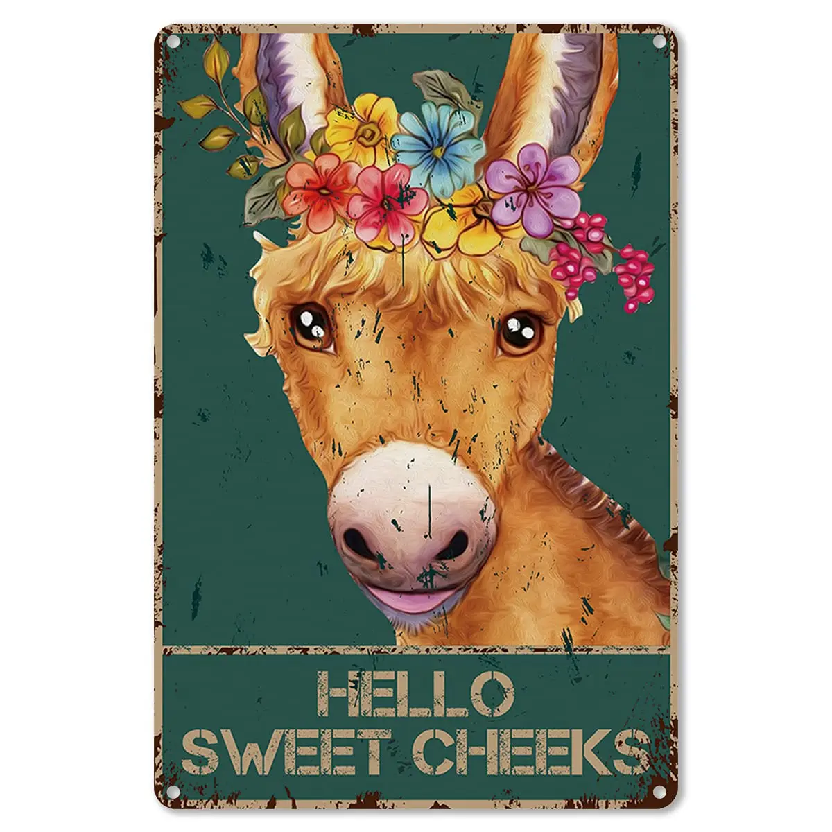 Винтажные милые щеки Hello, Ослик с цветами, жестяной знак для туалета, подарки, украшения для ванной комнаты в стиле ретро, идеи для подарка