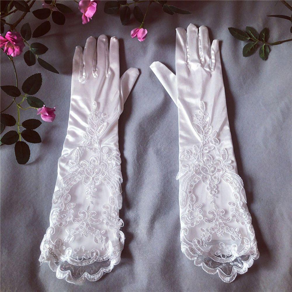 Винтажные пайетки вечеринка цветочные танцевальные атласные варежки перчатки с полными пальцами длинные перчатки длиной до локтя белый