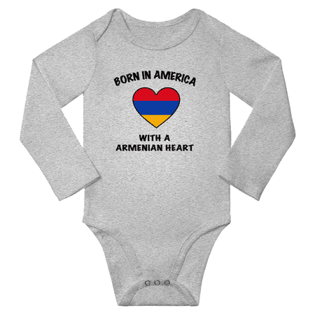 Born in America With a Armenian Heart Baby Long Sleeve Bodysuit (Gray 6 Months)