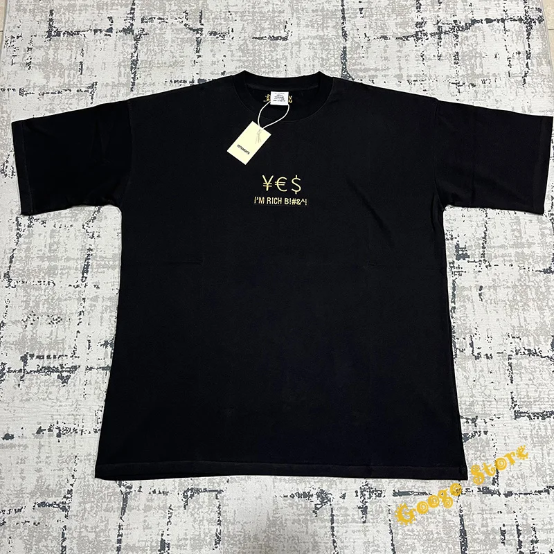 Толстая хлопковая Футболка VTM для мужчин и женщин, тяжелая ткань с вышивкой символа Золотой валюты, 1:1 метки, черный цвет