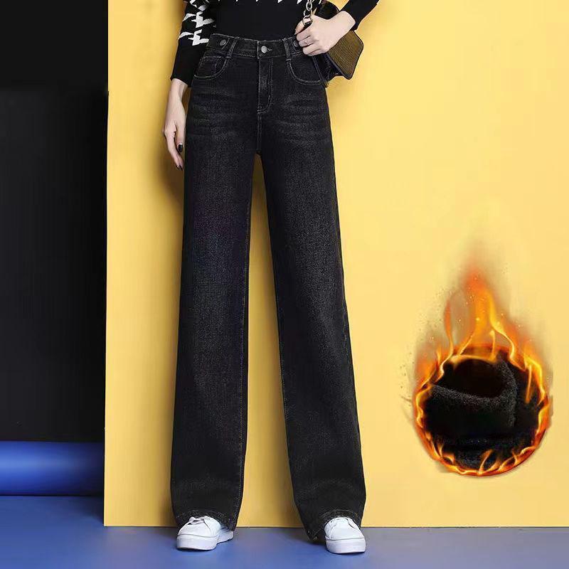 Винтажные утолщенные широкие джинсы зимние брюки из денима с высокой талией мешковатые теплые прямые брюки модные женские плюшевые вакеросы 28