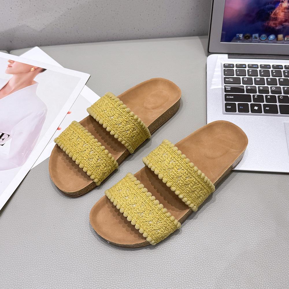 Винтажные шлепанцы на толстой подошве и танкетке с плетеными перекрестными ремешками, универсальные крутые шлепанцы, женские, для отпуска, пляжные, крутые шлепанцы 40 жёлтый