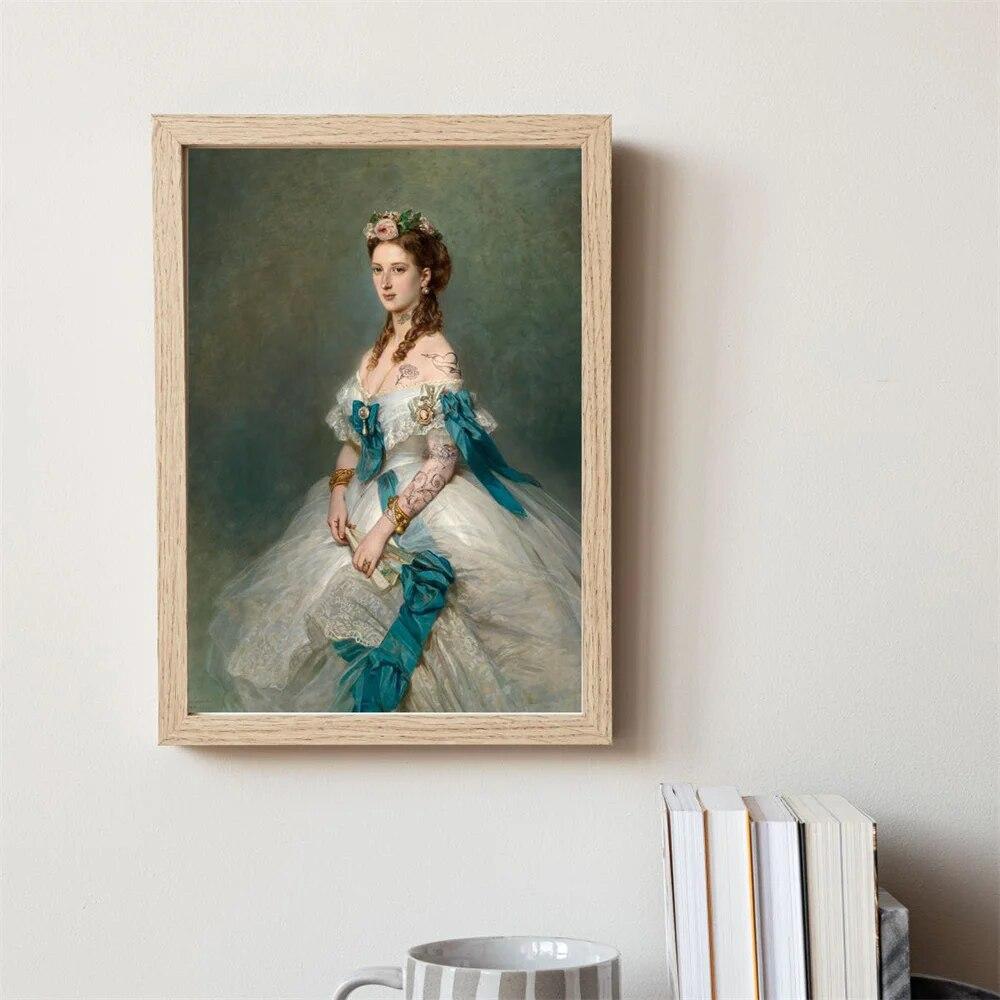 Винтажный женский портретный постер с татуировкой, изобразительное искусство, принты, измененная настенная живопись на холсте, картина маслом, домашний декор для спальни, галереи 21cm×30cm NoFrame