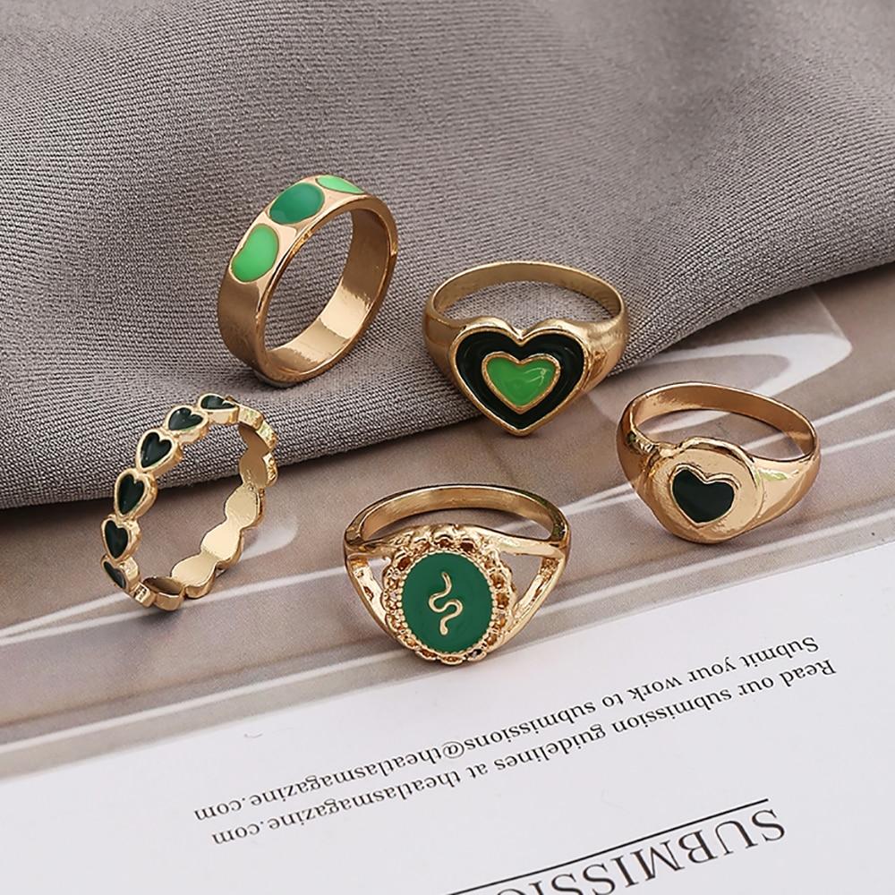 Винтажный зеленый стиль, набор колец в виде змеиного сердца для женщин, металлическое лакокрасочное покрытие, креативный INS стиль, кольцо с сердцем любви, модные ювелирные изделия