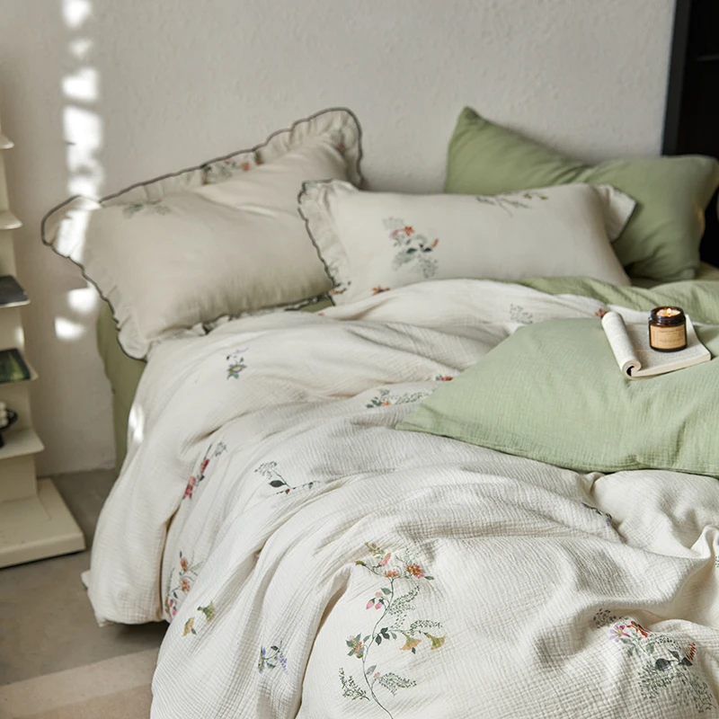 Винтажный комплект постельного белья с французским пасторальным цветочным принтом, 100% хлопок, двойная пряжа, мягкий пододеяльник, плоская/приталенная простыня, наволочки, 4 шт.