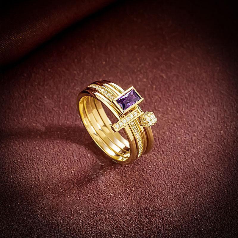 Винтажный набор колец с аметистом и муассанитом для женщин: Широкое кольцо, можно носить одно, роскошный комплект из трех частей US Size 9