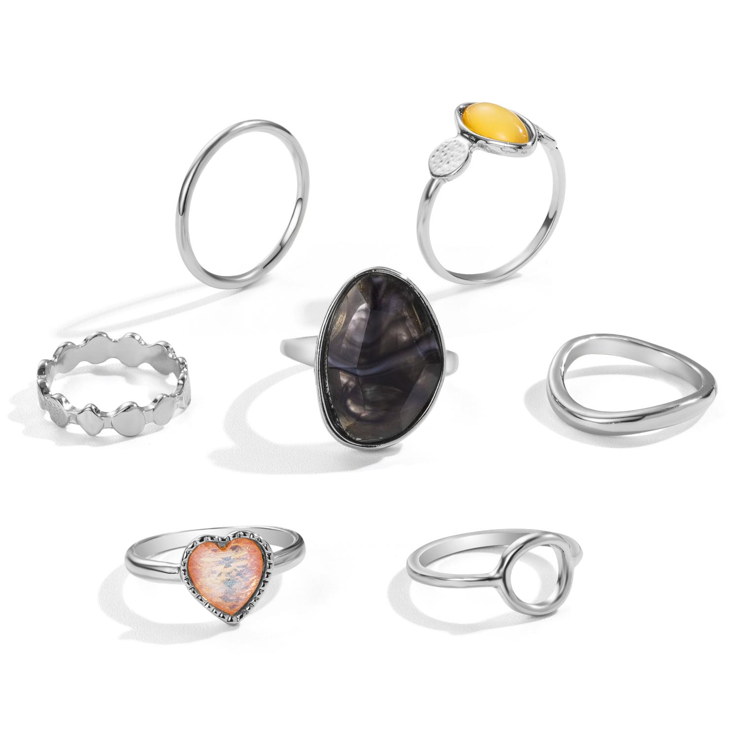 Винтажный набор колец Love для пары с благородным темпераментом и черными драгоценными камнями серебряный