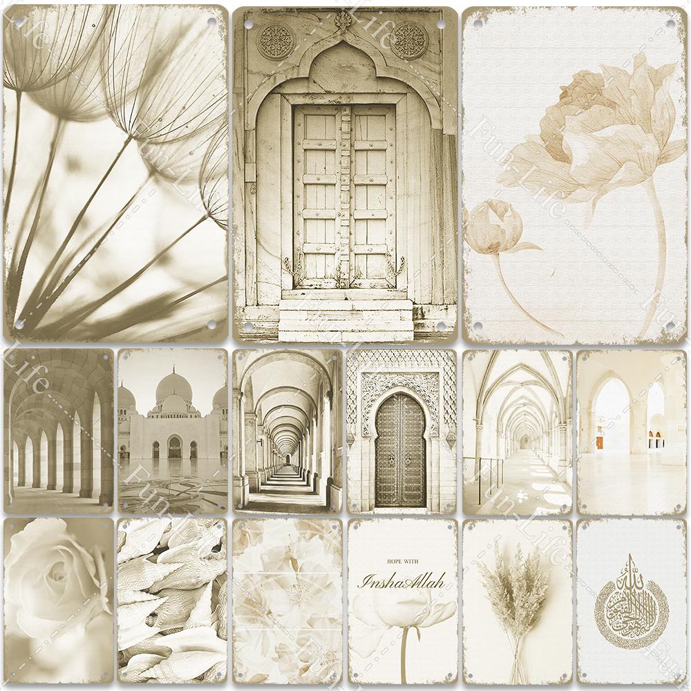Винтажный постер в богемном стиле, белое здание, металлические жестяные знаки, тарелка с цветами, экзотические ретро-налет, домашний декор для фермы, 20x30 см