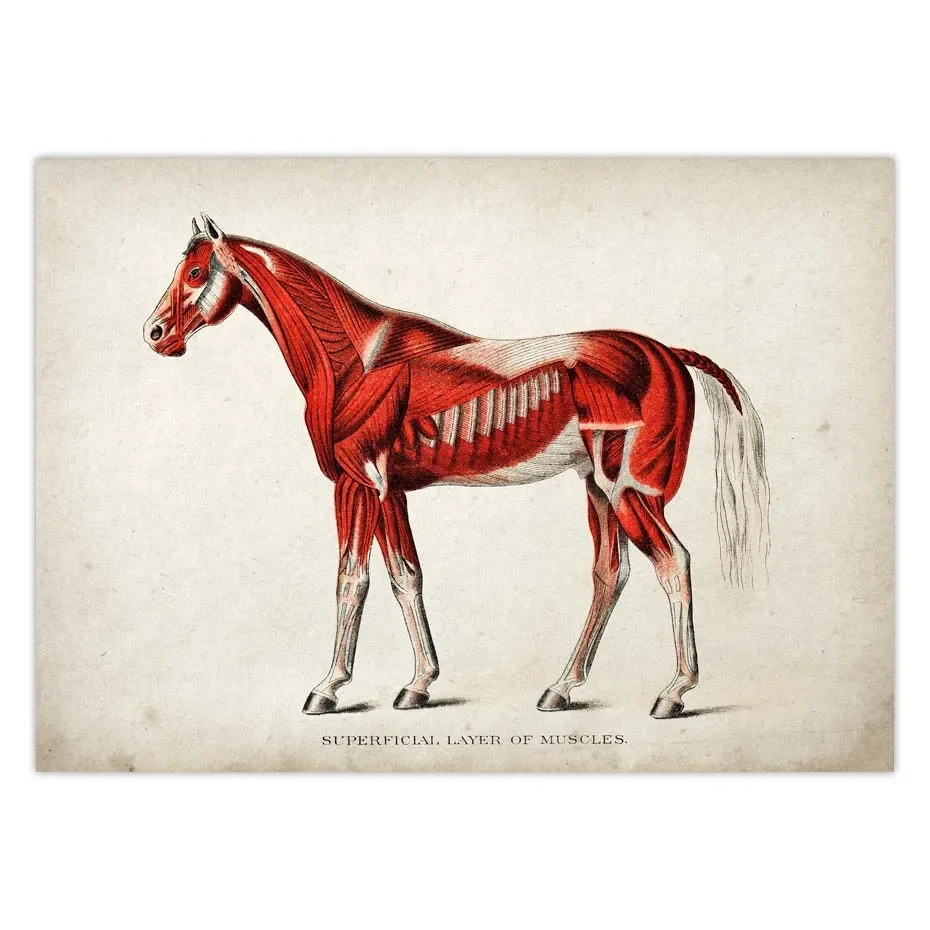 Винтажный постер с изображением лошади, медицинская иллюстрация, эквин, мышечные поверхностные мышцы, орлофа, лошадь, белая собака, настенное искусство