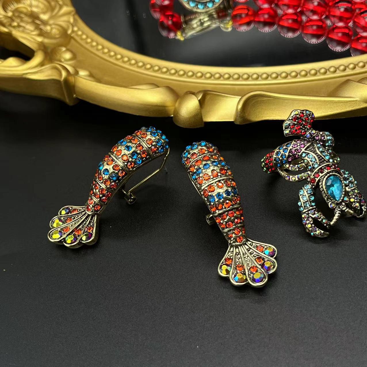 Винтажный роскошный стеклянный ювелирный набор с лобстером в придворном стиле: Ожерелье, Серьги, Кольцо