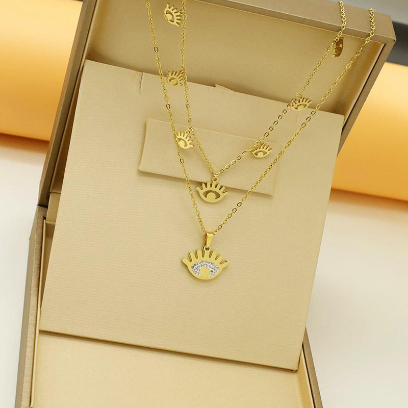 Винтажный стиль, титановая сталь, нержавеющая сталь, двухслойная цепочка с подвеской в виде глаза демона с цирконием