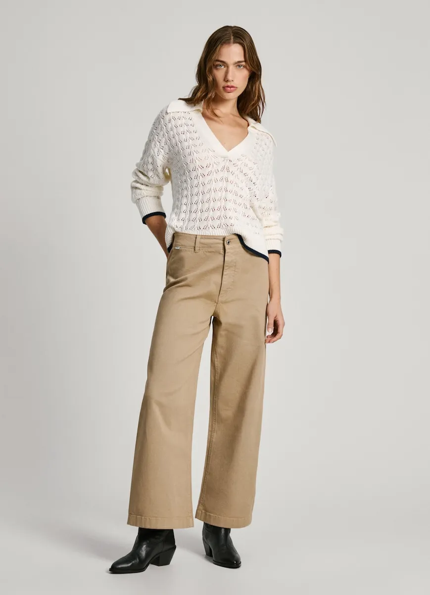Женские брюки-кюлоты с высокой посадкой из эластичного хлопка Pepe Jeans, бежевый