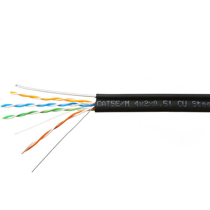 Витая пара UTP кат.5e, 4 пары, CU, 0.51 мм, 305м., внешний, одножильный, трос, черный, SkyNet (CSP-UTP-4-CU-OUTR)