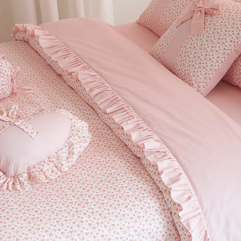 Вишня постельное белье, хлопковое, с рисунком King Размеры двуспальная кровать с узором и бантом Стёганое одеяло крышка с рюшами Покрывало пр...