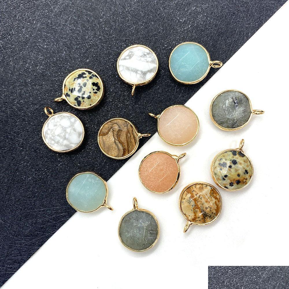 Charms 15X19Mm Gold Edged Natural Stone Charms Green Rose Quartz Crystal Pendant For Earrings Necklace Jewelry Making Wholesale Drop Dhs5F