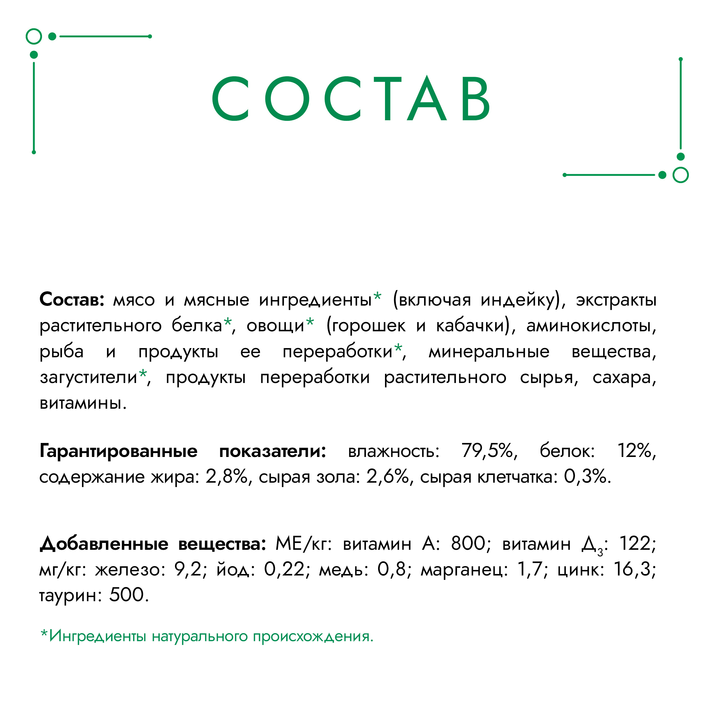 Влажный корм Гурмэ Натуральные рецепты для кошек, томленая индейка с горошком 75 г