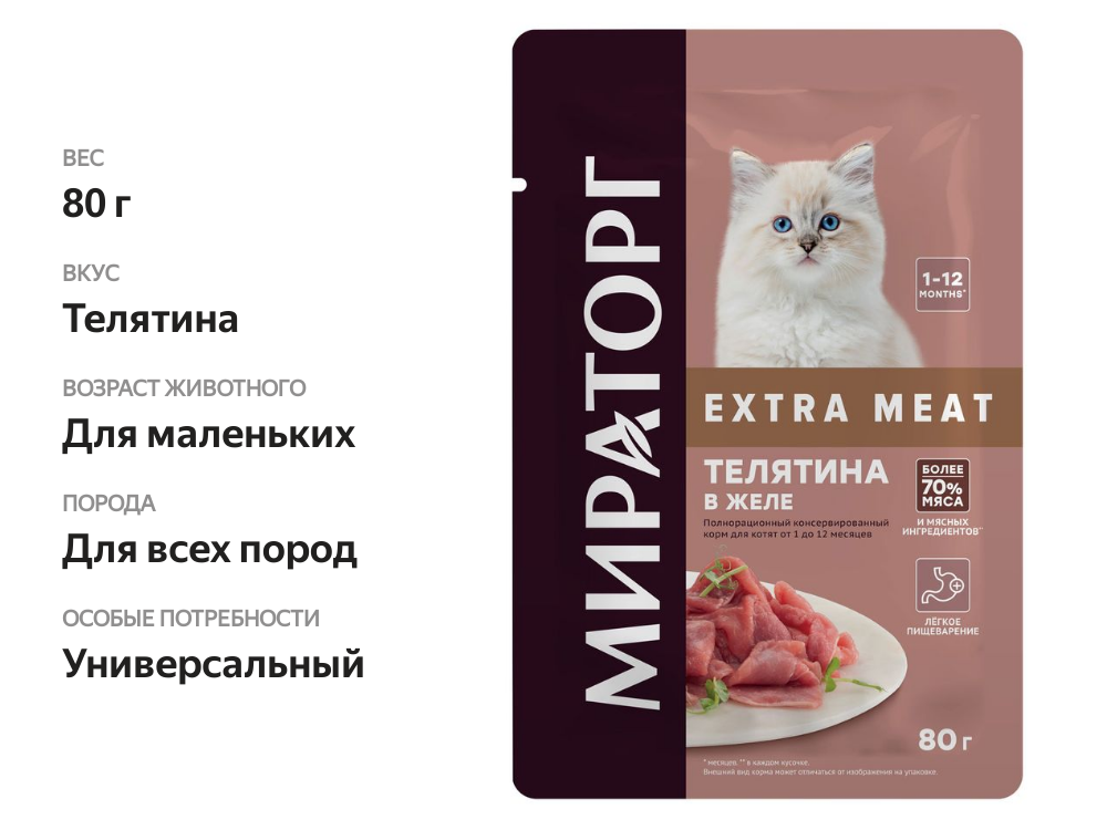 Влажный корм для котят Мираторг Winner Extra Meat с телятиной в желе 80 г