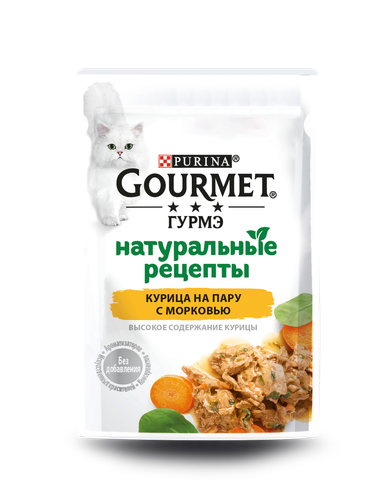 Влажный корм для кошек Гурмэ Натуральные рецепты Курица на пару с морковью 75 г