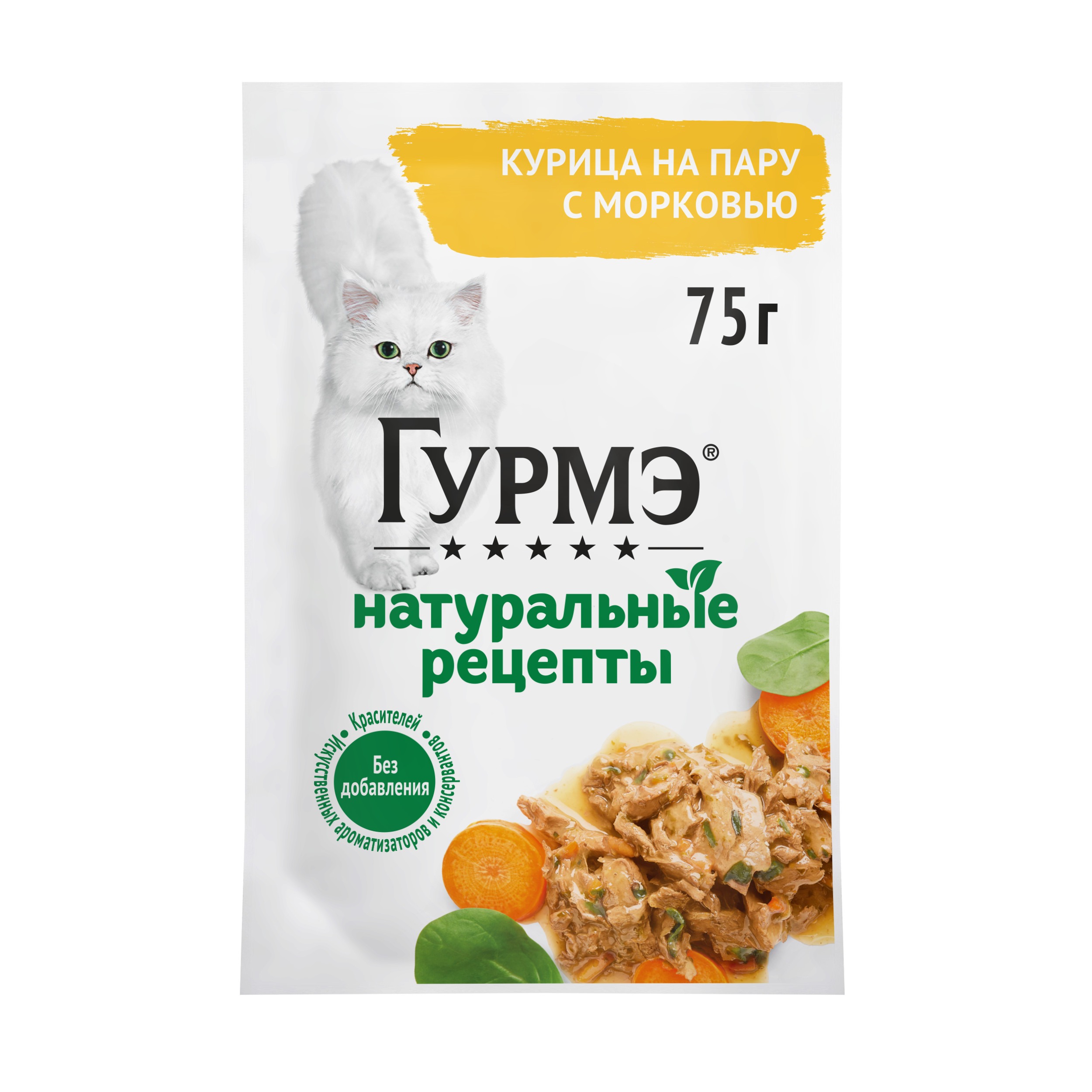 Влажный корм для кошек Гурмэ Натуральные рецепты Курица на пару с морковью 75 г