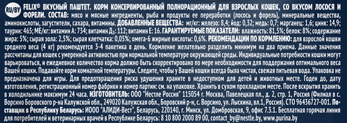 Влажный корм для кошек Felix Вкусный паштет Лосось и форель 75 г