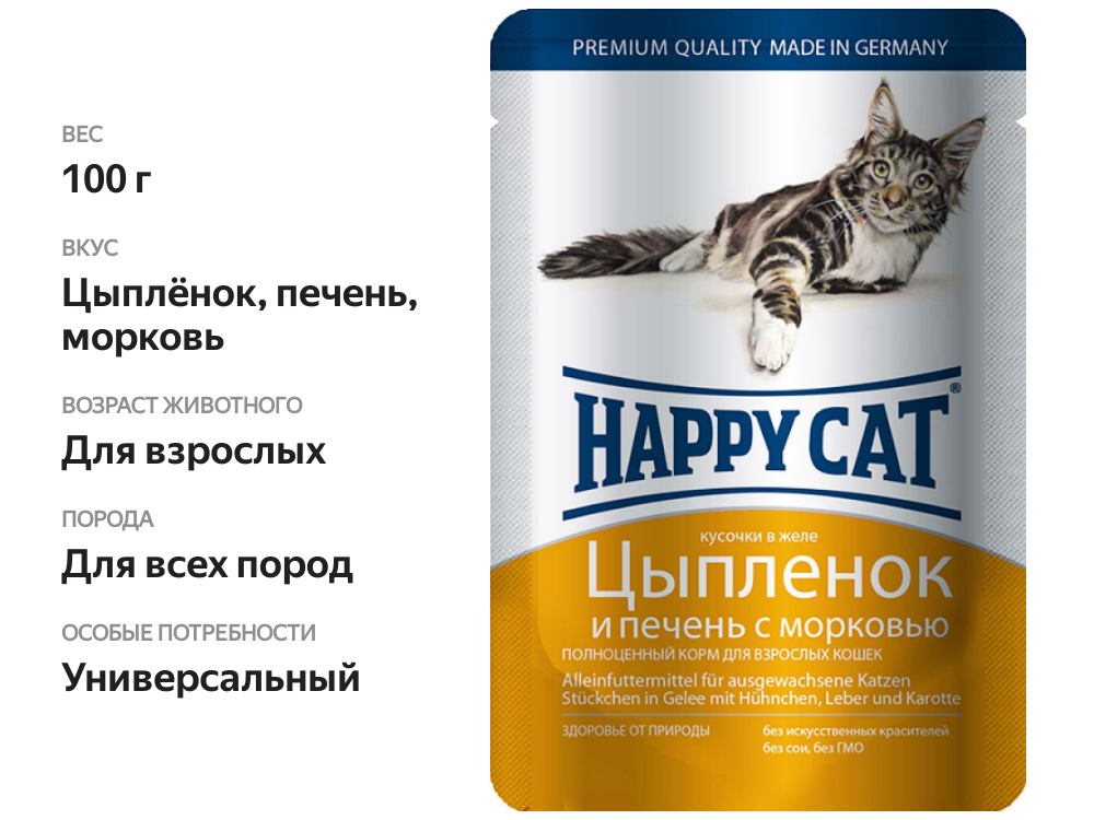 Влажный корм для кошек Happy Cat цыпленок и печень с морковью 100 г