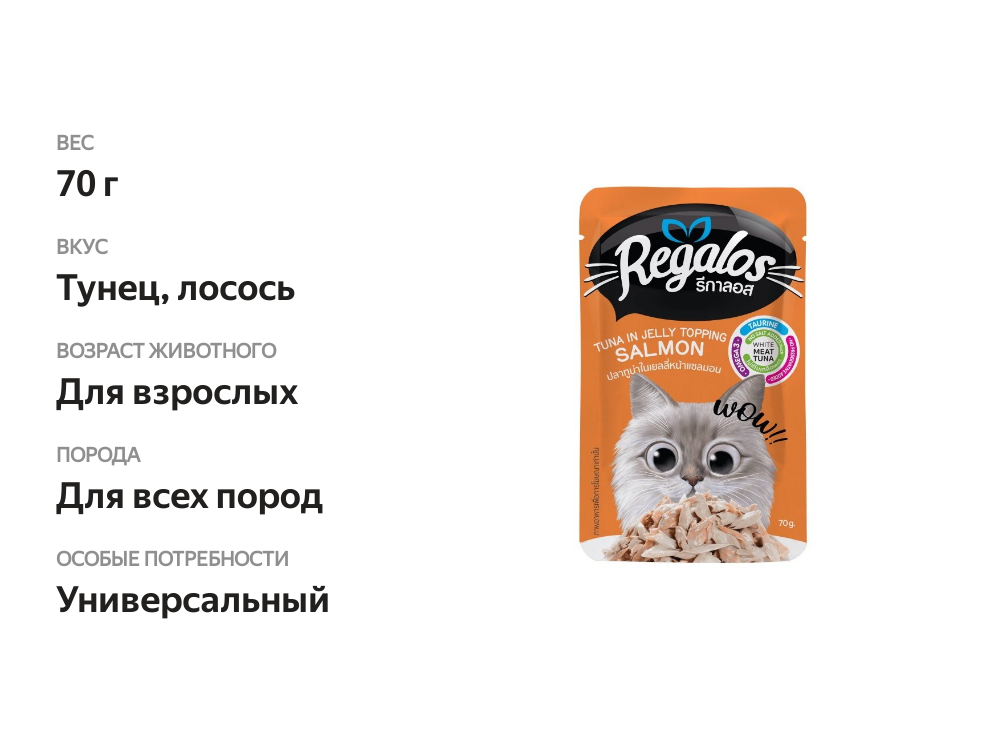 Влажный корм для кошек Regalos Тунец с лососем в желе 70 г