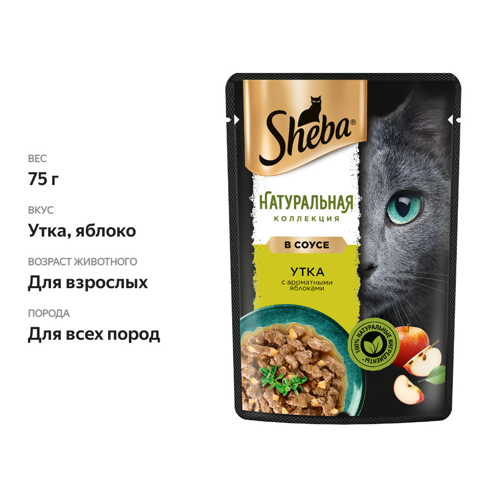 Влажный корм для кошек Sheba Натуральная Коллекция с уткой и добавлением яблок 75 г
