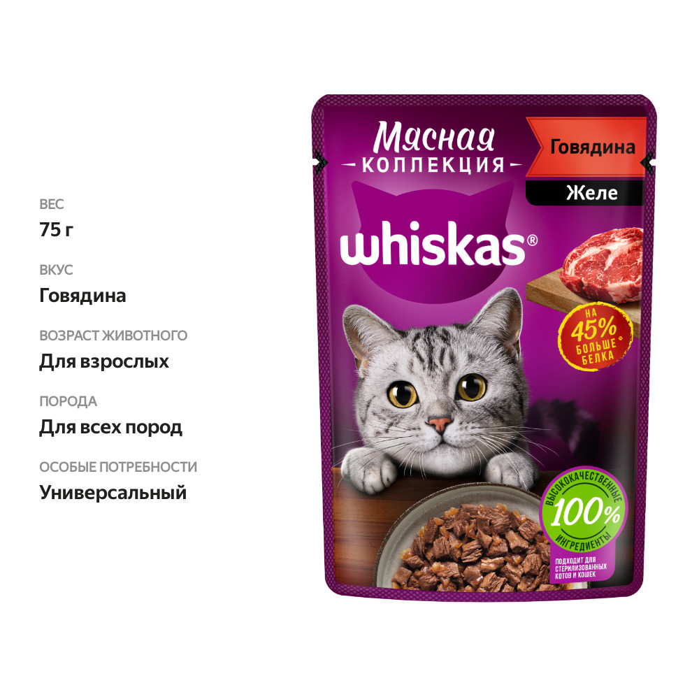 Влажный корм для кошек Whiskas Мясная Коллекция с говядиной 75 г