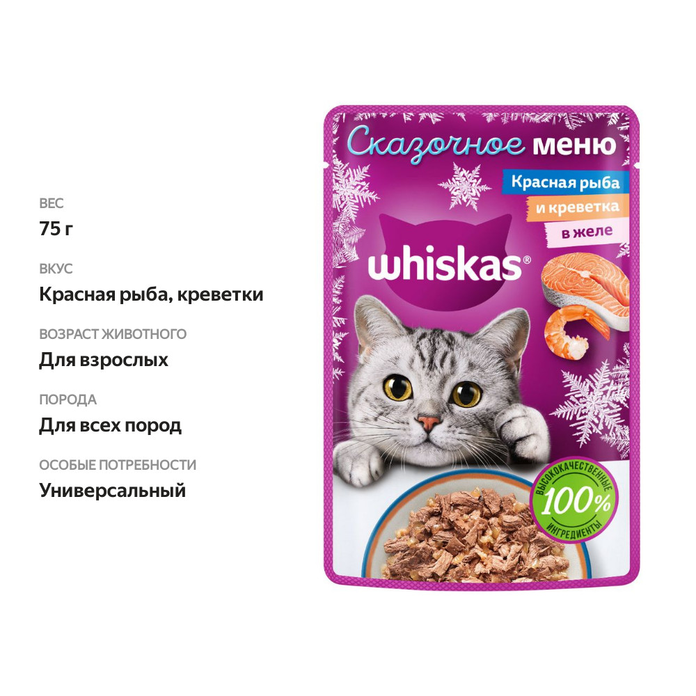 Влажный корм для кошек Whiskas с красной рыбой и креветкой в желе 75 г