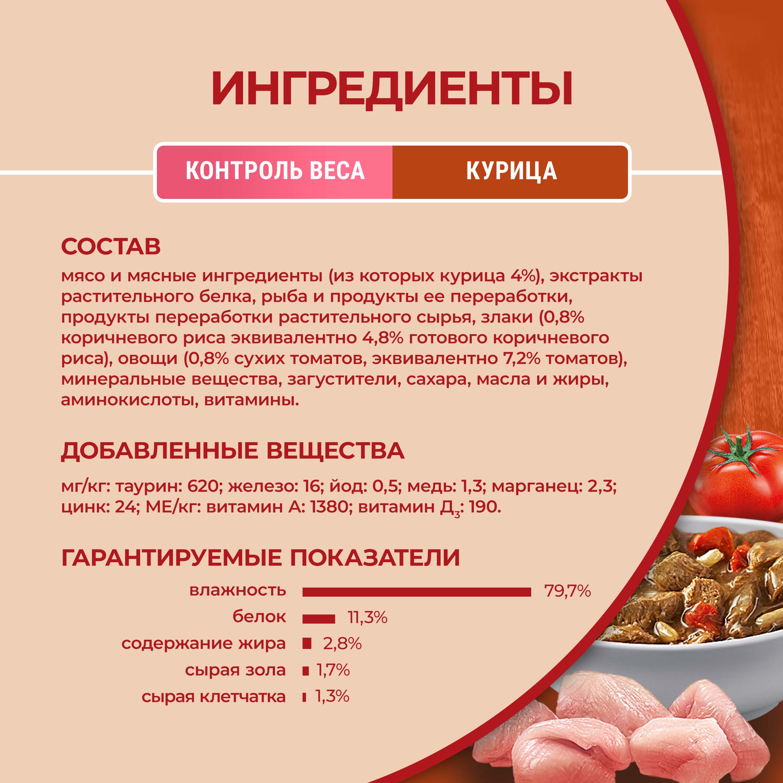 Влажный корм Purina One Мини Контроль веса для взрослых собак мелких пород, с курицей, коричневым рисом и томатами в подливе 85 г