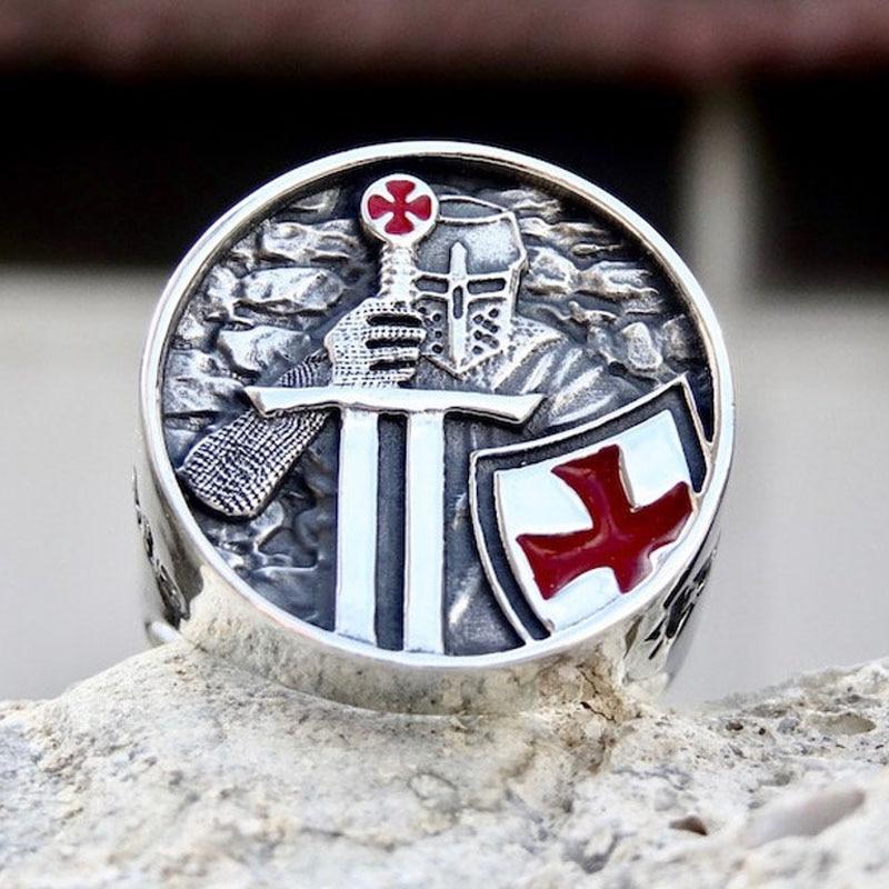 Властное модное рыцарское храмовое кольцо с мечом Красного Креста, кольцо-амулет, тотемный герой, мужской