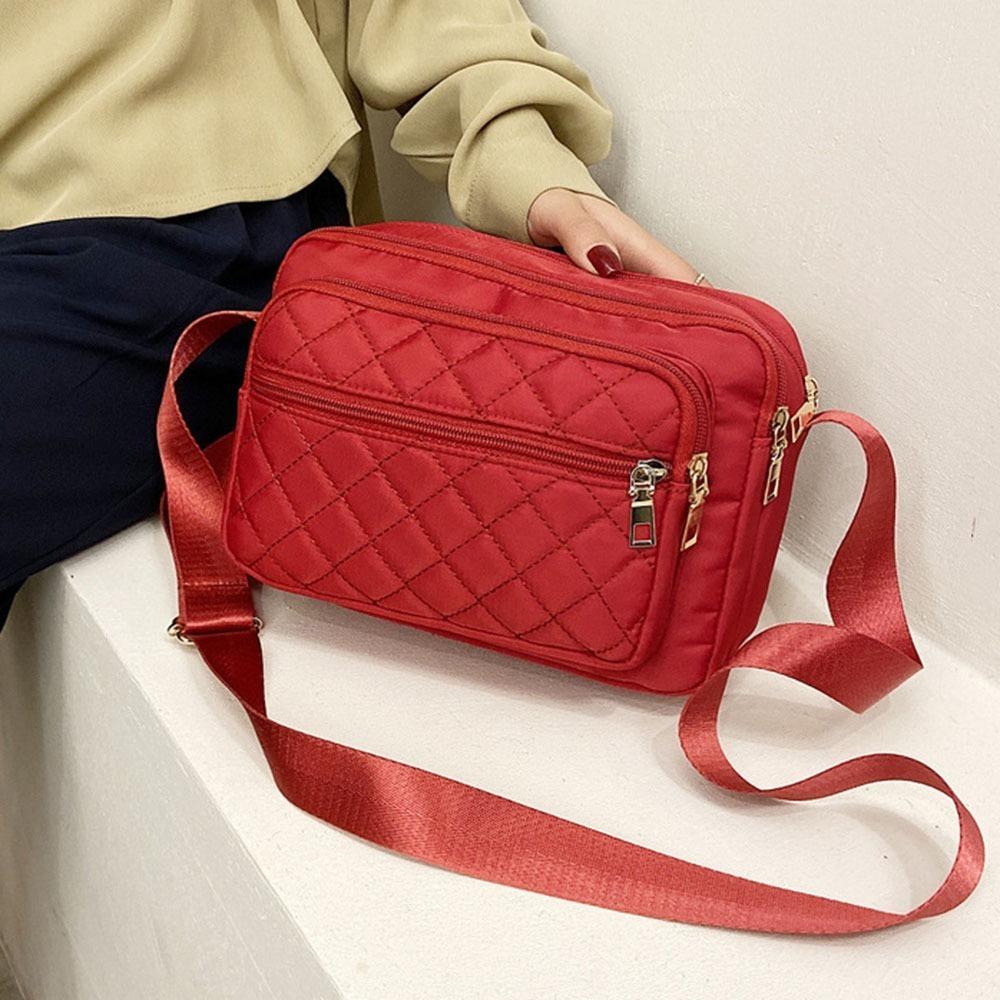 Вместительная вышитая нейлоновая сумка кроссбоди в клетку, женская сумка-мессенджер, для улицы чёрный