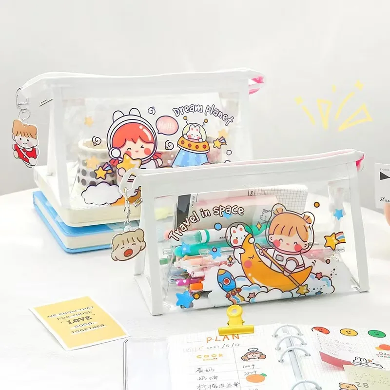 Вместительная мультяшная прозрачная сумка для карандашей, сумка для хранения принадлежностей для начальной школы, симпатичная сумка для канцелярских принадлежностей в стиле Ins, оптовая продажа
