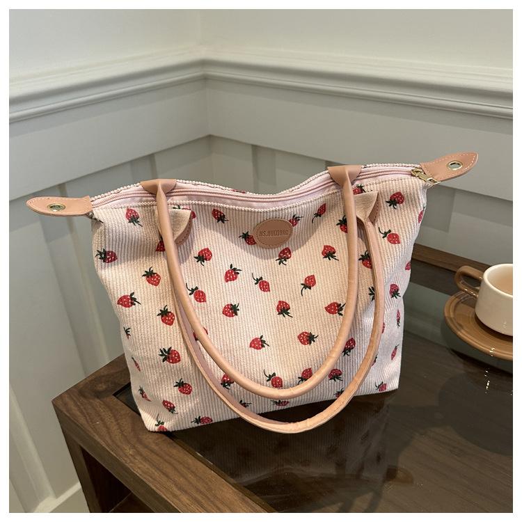 Вместительная повседневная персональная сумка через плечо с принтом клубники, сумка для поездок на работу, новая весенняя портативная сумка-тоут 2025 года розовый