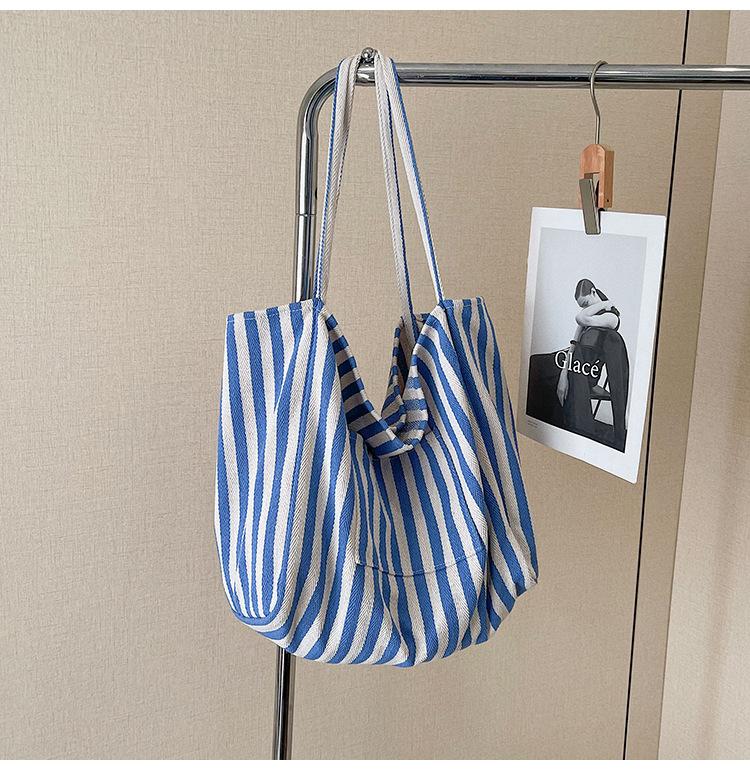 Вместительная полосатая сумка для покупок, сумка для работы, сумка в стиле lazy wind, нишевая повседневная универсальная парусиновая сумка для весны и лета