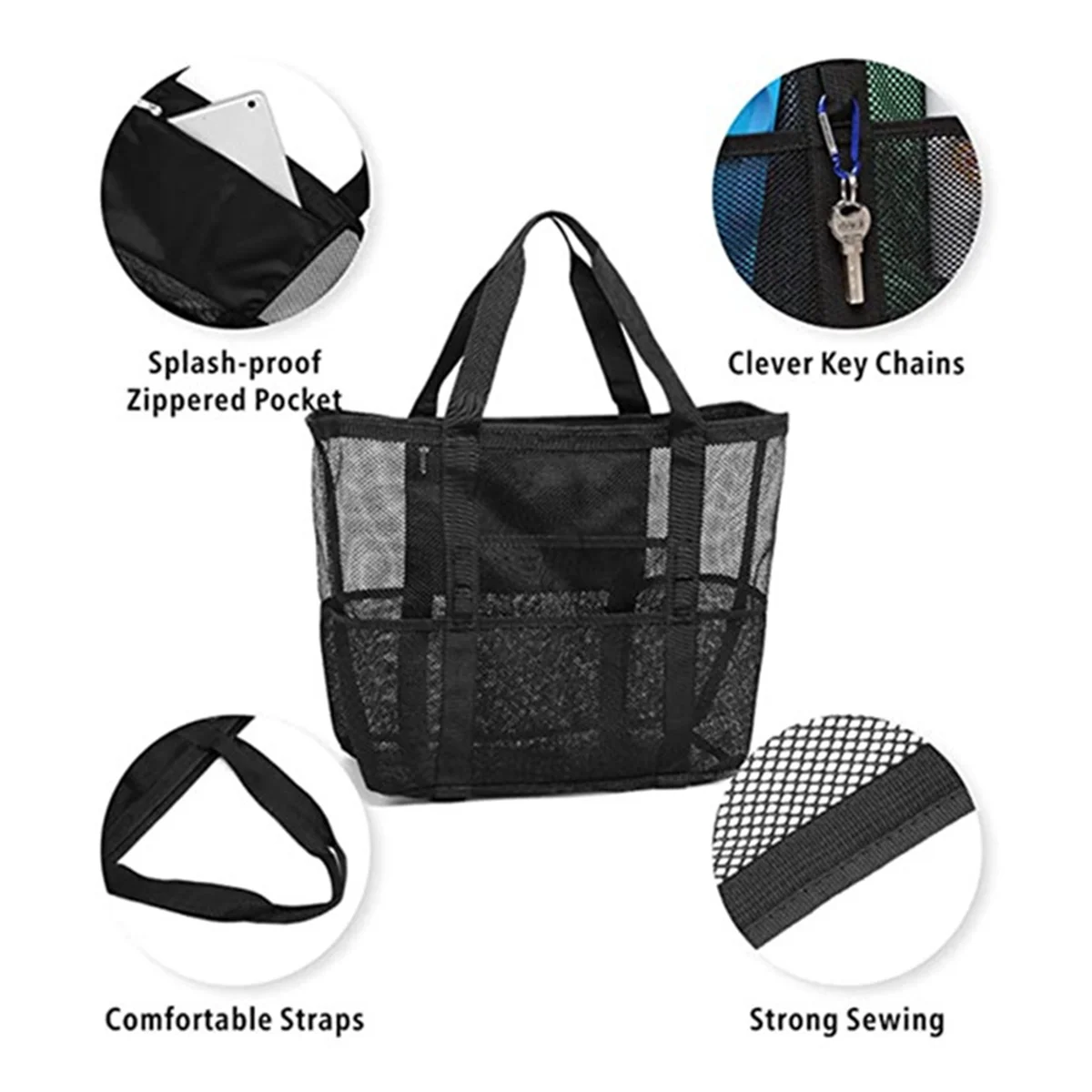 Вместительная сетчатая пляжная сумка-тоут, Портативная сумка для ланча, практичная сумка на плечо для ванной, дорожная сумка для хранения пищи и напитков