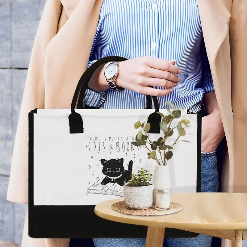 Вместительная сумка для хранения кошек и книг, портативная дорожная сумка через плечо, Ланч-бокс, многоразовые сумки для покупок, лучший подарок для тех, кто любит кошку