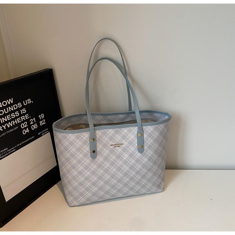 Вместительная сумка под мышкой женская 2025 новая корейская версия клетчатая сумка через плечо текстурная легкая роскошная простая сумка-тоут для通勤