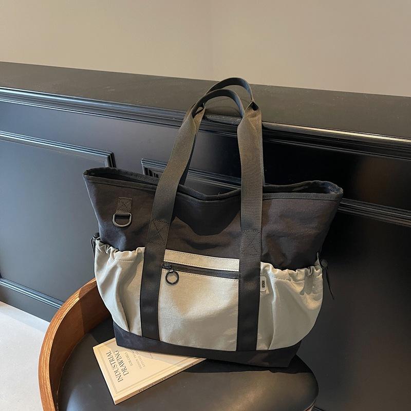 Вместительная сумка-тоут, универсальная контрастная наплечная сумка, женская летняя новинка, повседневная рабочая сумка для поездок серый
