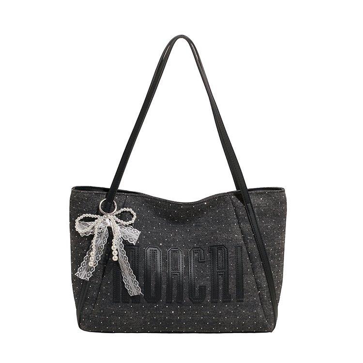 Вместительная универсальная модная сумка Женская 2025 Лето Джинсовая сумка-тоут Повседневная сумка через плечо для поездок на работу чёрный
